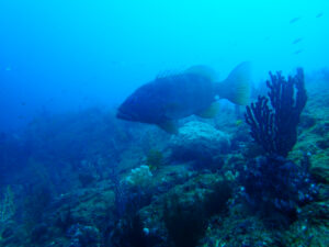 水温は水面付近から浅場でも17.6℃、30M程度まで落ちると16℃台とだいぶ下がってきました。透明度は悪くはないのですが、全体的に白っぽくスッキリしない感じですが、それでも15m前後見えてます。