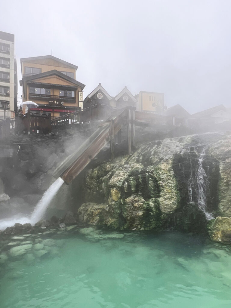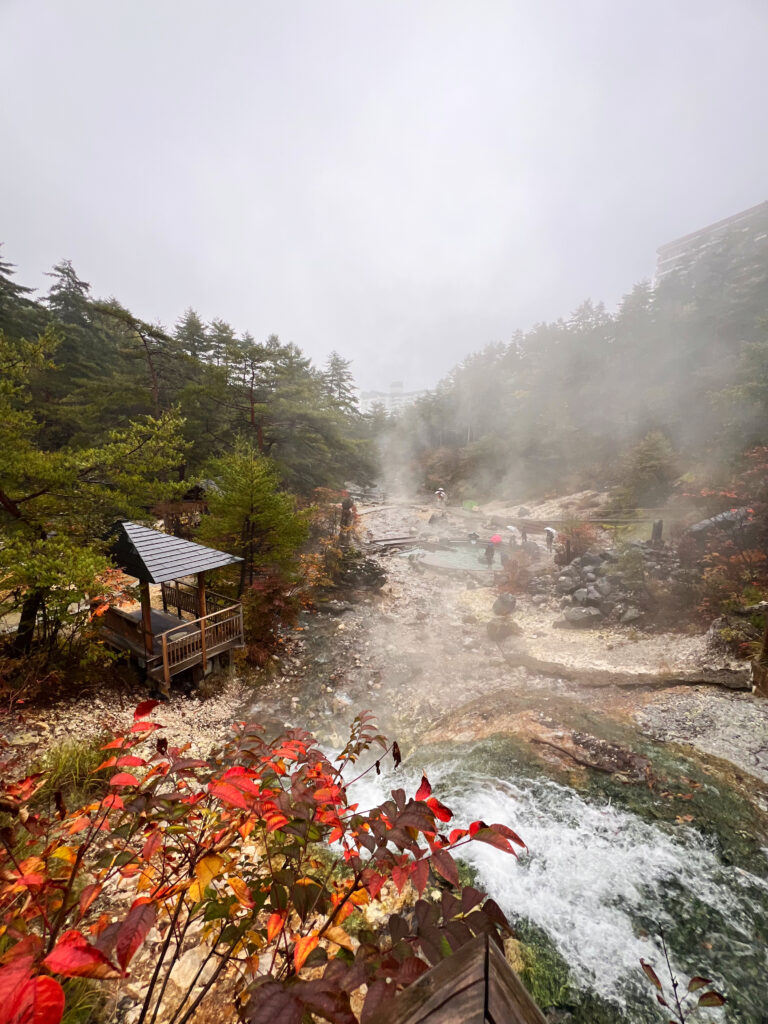 今回まずは、湯畑から西へ、西の河原通りを上って行った先にある“西の河原露天風呂”。ここの露天風呂、とにかく広かったです。草津観光協会のWEBによると“男女合わせると500㎡と日本でも有数の広さを誇る露天風呂。”だそうでほんと広い!自分が入った時は先客が3名ほどいましたが、すぐに上がられたので、貸切状態でとっても贅沢な時間を過ごさせてもらいました。霧雨のような細かい雨が降る露天風呂はほんと風情たっぷり。癒されて来ました。