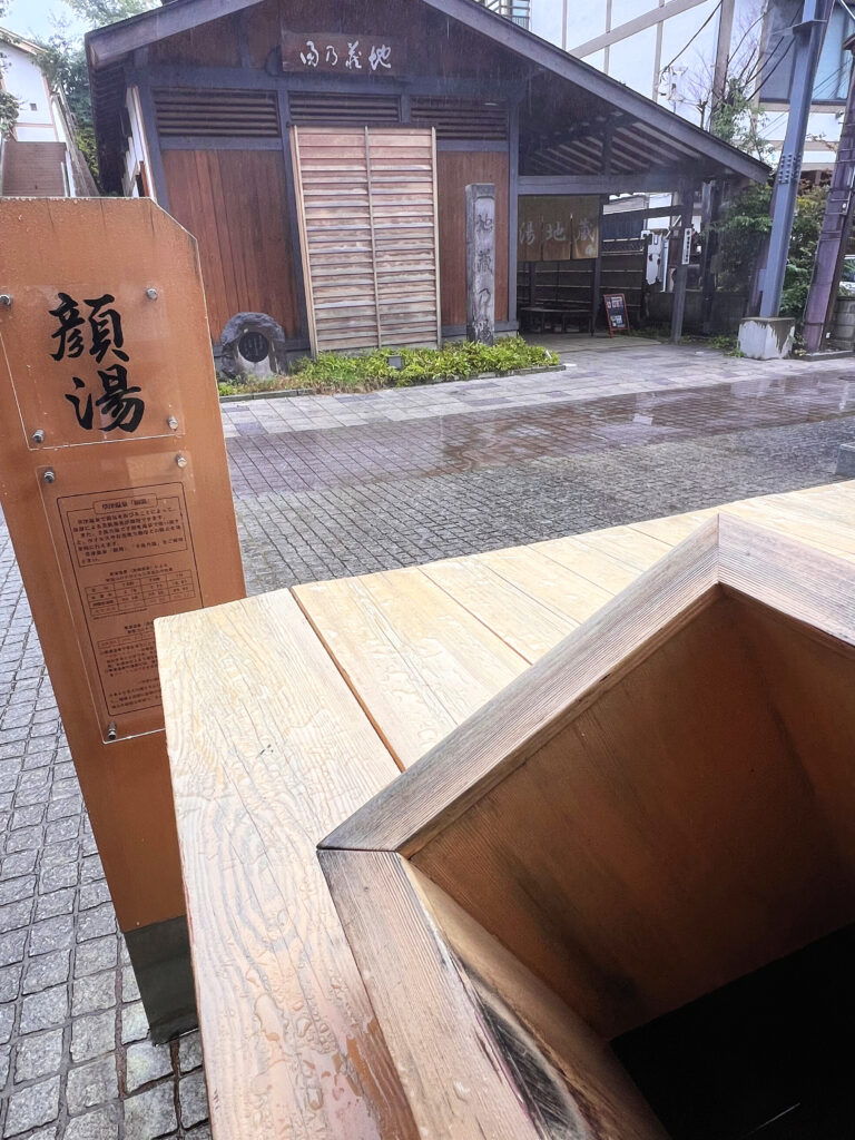 地蔵の湯の真正面にある木製の四角い箱、“なんだろか?”って思ったら「顔湯」(笑)。温泉の湯気(蒸気)が出ていて、この四角に顔をあてるとホカホカになります。これだけで美肌効果十分ありかと。さすが名だたる温泉地、いろいろ趣向(工夫)を凝らしてます!