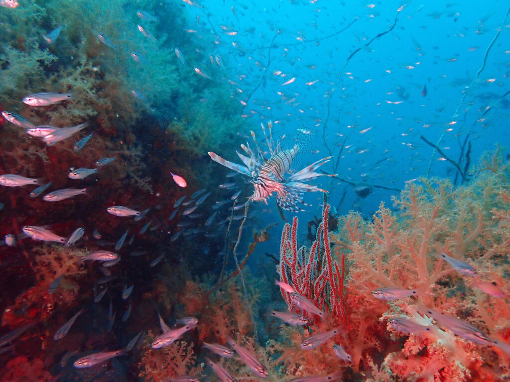 水中は今日も少し浮遊物のせいでスッキリしない感じの部分もありましたが、透視度10mから良いところでは15mくらいと良く見えてます。